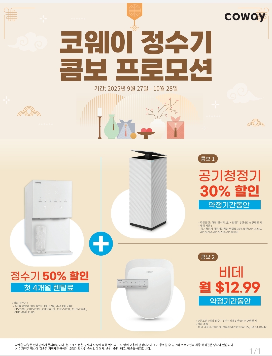 4개월동안 50%할인AP-3018B 6년 신규 렌탈시