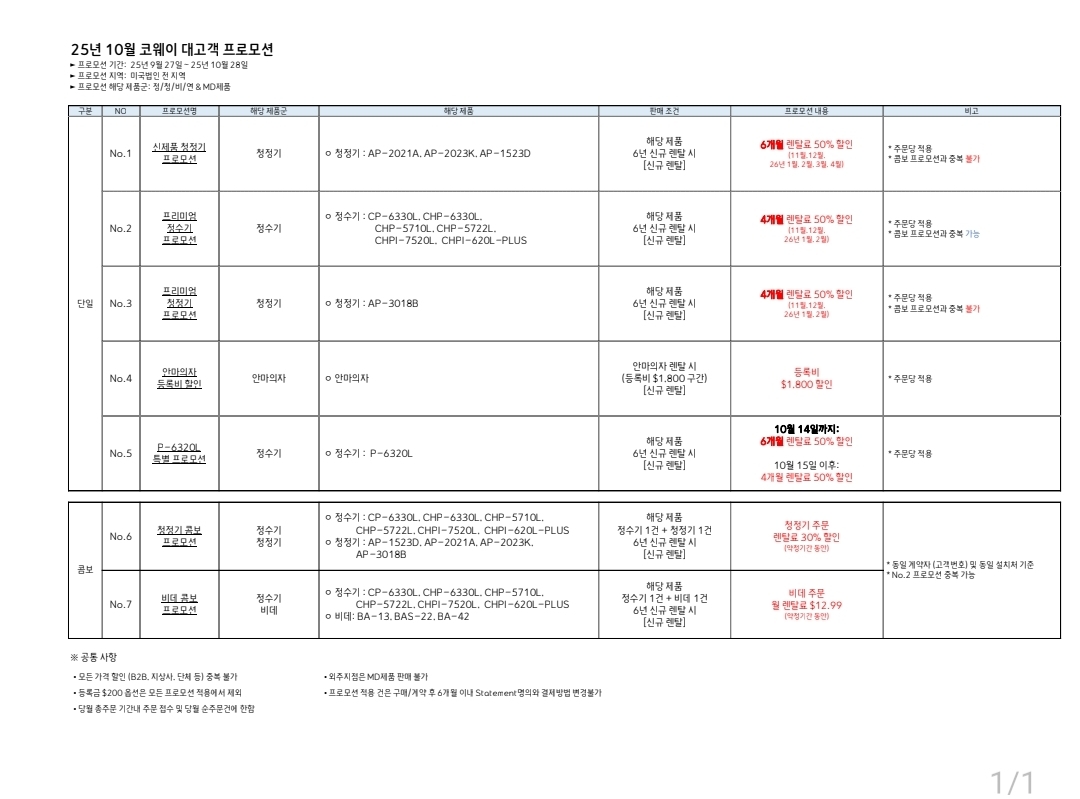 6개월동안 50%할인해당 공기청정기 6년 신규 렌탈시